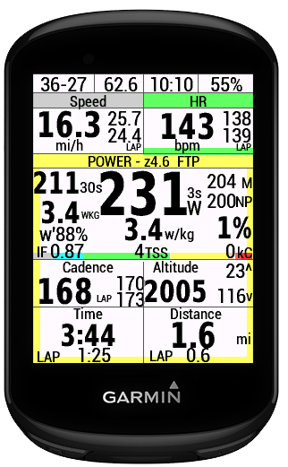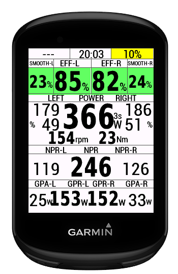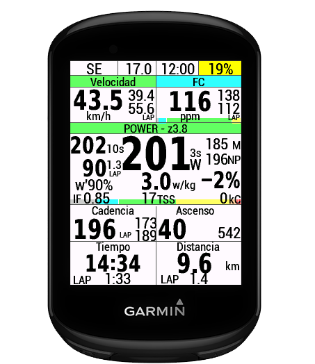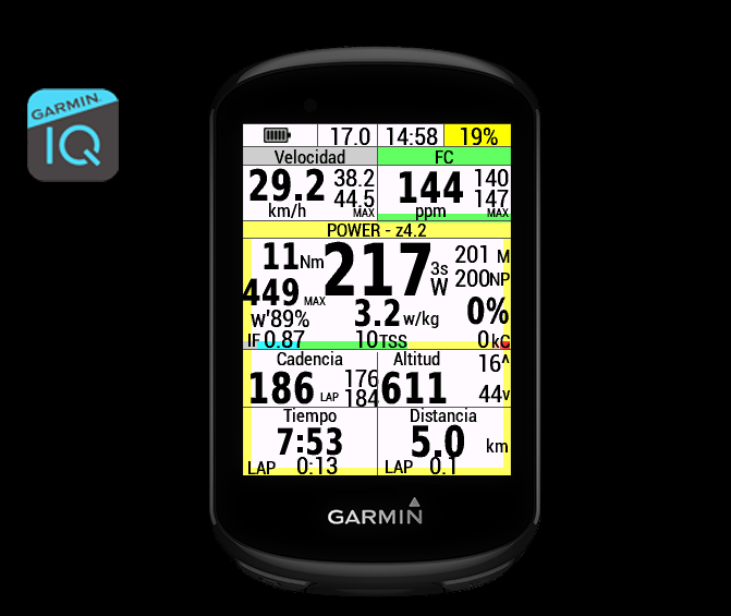 Campo de datos para dispositivos Garmin y potenciómetro. Todo en uno en una pantalla.