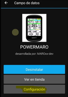 Para instalar POWERMARO en tu dispositivo debes hacerlo desde la tienda de aplicaciones de Garmin (es gratuita):