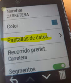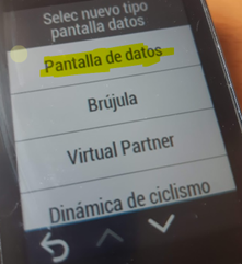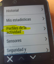 Enciende el Garmin, ve a las opciones, perfiles de actividad y elige el perfil donde quieres añadir el campo de datos: