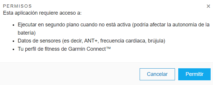 Por ultimo te pedirá la confirmación de los datos necesarios, la aplicación solo accede a tu perfil de fitness para obtener tu peso y zonas cardiacas, datos de sensores y ejecución en segundo plano de algunas funciones como la toma de temperatura que se realiza cada 5 minutos en lugar de cada segundo para optimizar el uso de batería.